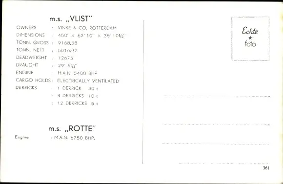 Ak Dampfer MS Vlist, Vinke und Co. Rotterdam