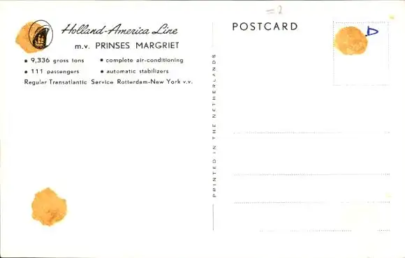 Ak Dampfer MV Prinses Margriet, Holland America Line HAL