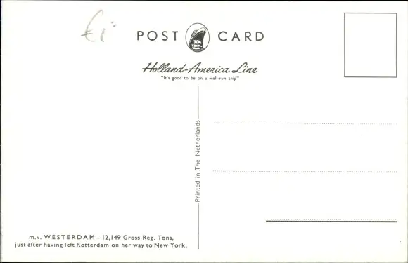 Ak Dampfer MV Westerdam, Holland America Line, HAL
