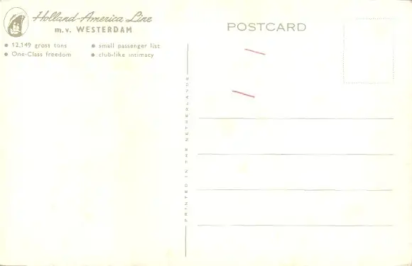 Ak Dampfer MV Westerdam, Holland America Line, HAL