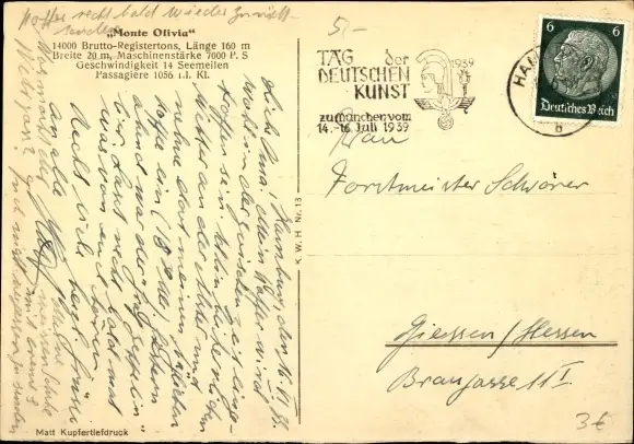 Ak Dampfer Monte Olivia der HSDG in Fahrt
