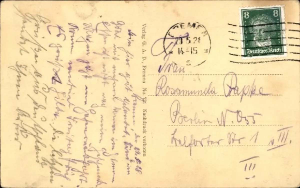 Zustand, siehe Scan, gelaufen, 1928 - ca 14 cm X 9 cm