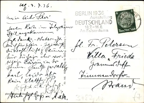 Zustand, siehe Scan, gelaufen, 1936 - ca 15 cm X 11 cm