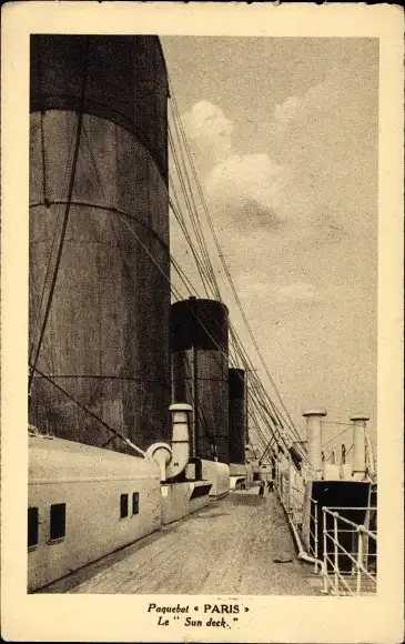 Ak Dampfer Paris, CGT, French Line, Sonnendeck