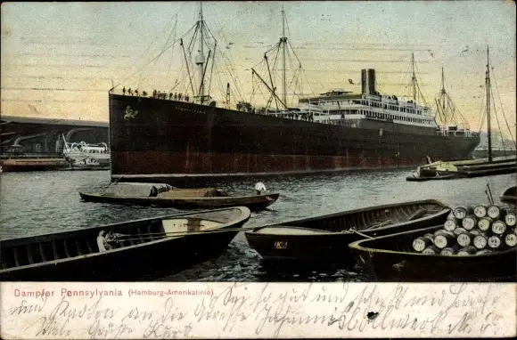 Ansichtskarte, Postkarte, Hafen, Schiffe, Boote, Dampfer, Boot