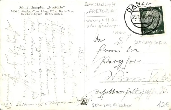 Zustand, siehe Scan, gelaufen, 1940 - ca 14 cm X 9 cm