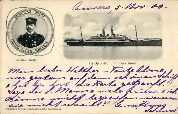 Ak Dampfer Princess Irene, Kapitän Wetin, Norddeutscher Lloyd