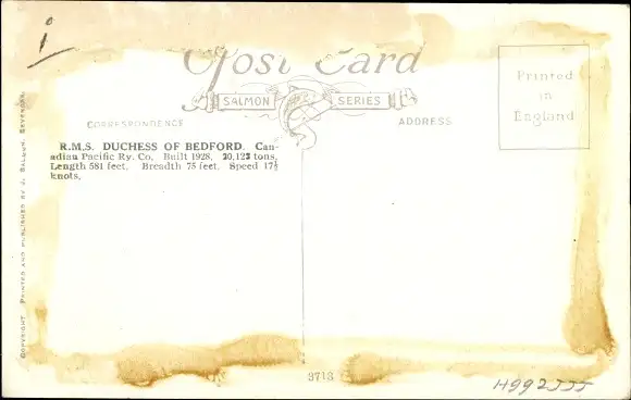 Ak Dampfer R.M.S. Duchess of Bedford, Canadian Pacific Ships, CPS