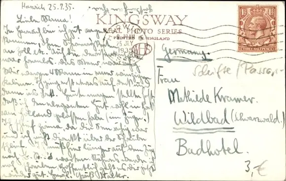 Zustand, siehe Scan, gelaufen, 1935 - ca 14 cm X 9 cm