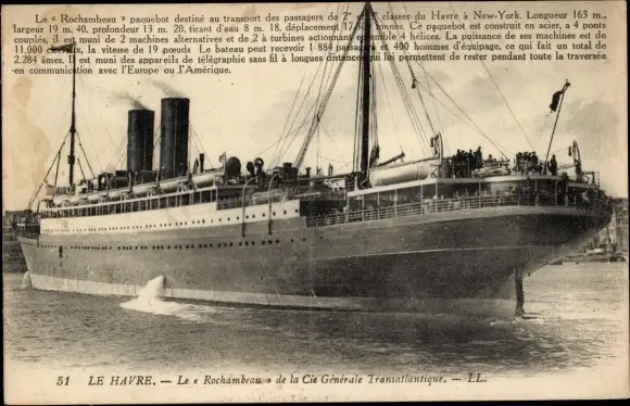 Ak Dampfer Rochambeau, CGT, French Line