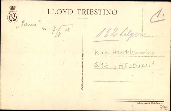 Ak Dampfer SMS Helouan, Lloyd Triestino, Kuk Handelsmarine