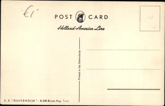 Ak Dampfer SS Duivendijk, Ansicht Steuerbord, Holland America Line, HAL