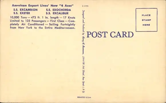 Ak Dampfer, S.S. Excambion, S.S. Exochorda, S.S. Exeter, S.S. Excalibur, American Export Lines