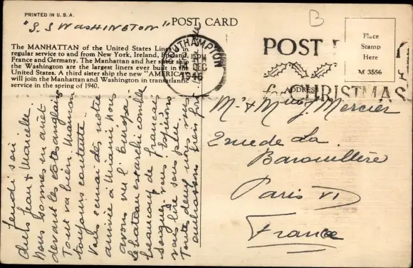 Ak Dampfer SS Manhattan, USL