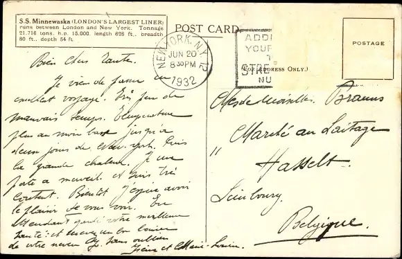 Zustand, siehe Scan, gelaufen, 1932 - ca 14 cm X 9 cm