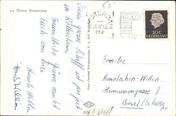 Zustand, siehe Scan, gelaufen, 1958 - ca 14 cm X 9 cm