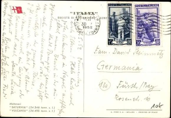 Ak Dampfer Saturnia, Vulcania, Italia Società di Navigazione