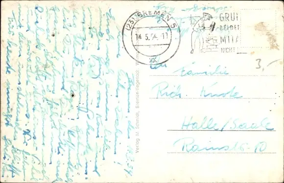 Zustand, siehe Scan, gelaufen, 1954 - ca 14 cm X 9 cm