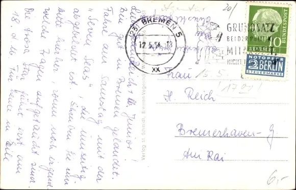 Zustand, siehe Scan, gelaufen, 1954 - ca 14 cm X 9 cm