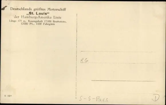 Ak Dampfer St. Louis, Hamburg Amerika Linie, HAPAG