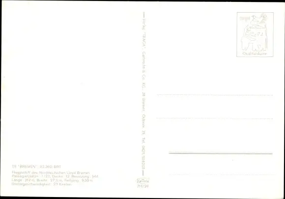 Ak Dampfer TS Bremen, Norddeutscher Lloyd