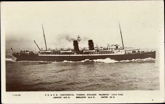 Ak Dampfer, Turbine Steamer Biarritz, Ansicht Steuerbord