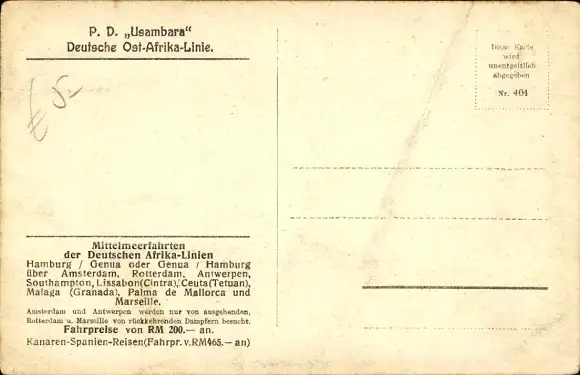 Ak Dampfer Usambara, Deutsche Ost-Afrika Linie, DOAL