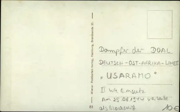 Ak Dampfer Usaramo, Deutsche Ost-Afrika Linie, DOAL