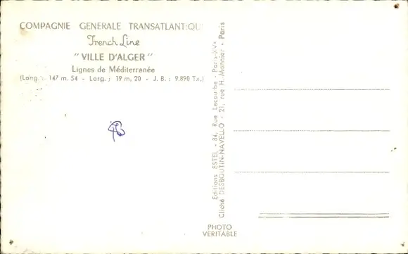 Ak Dampfer Ville D'Alger, CGT, French Line