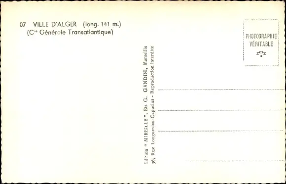 Ak Dampfer Ville d'Alger, CGT, French Line