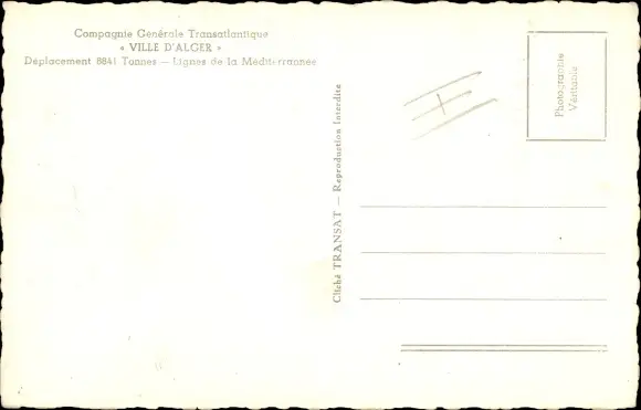 Ak Dampfer Ville d'Alger, CGT, French Line