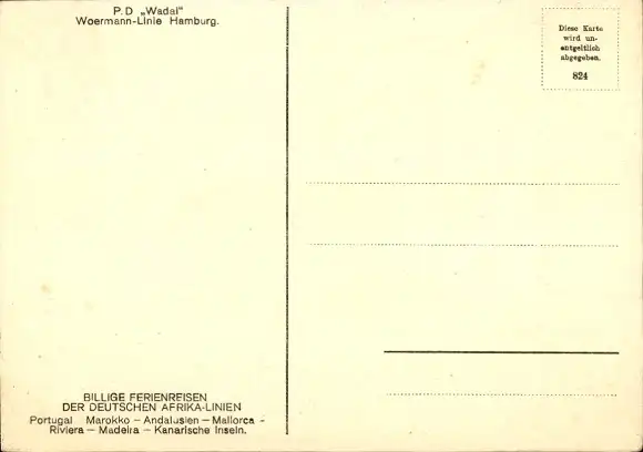 Ak Dampfer Wadal, Woermann-Linie Hamburg
