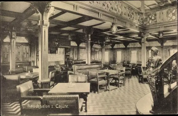 Ak Dampfer der HAPAG, Rauchsalon I. Kajüte
