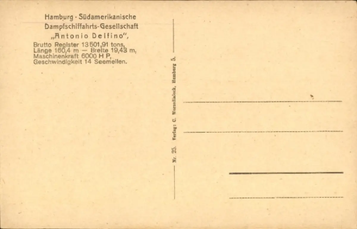Ak Dampfschiff Antonio Delfino, HSDG, Schnelldampfer