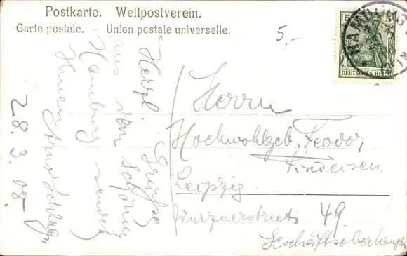 Zustand, siehe Scan, gelaufen, 1908 - ca 14 cm X 9 cm