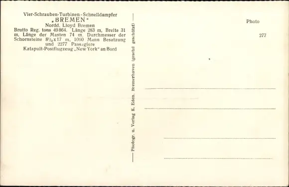 Ak Dampfschiff Bremen, Norddeutscher Lloyd