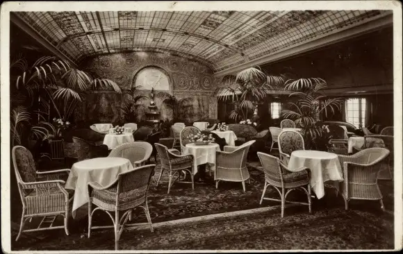 Ak Dampfschiff Cap Arcona, Turbinen Schnelldampfer, HSDG, Wintergarten, Innenansicht