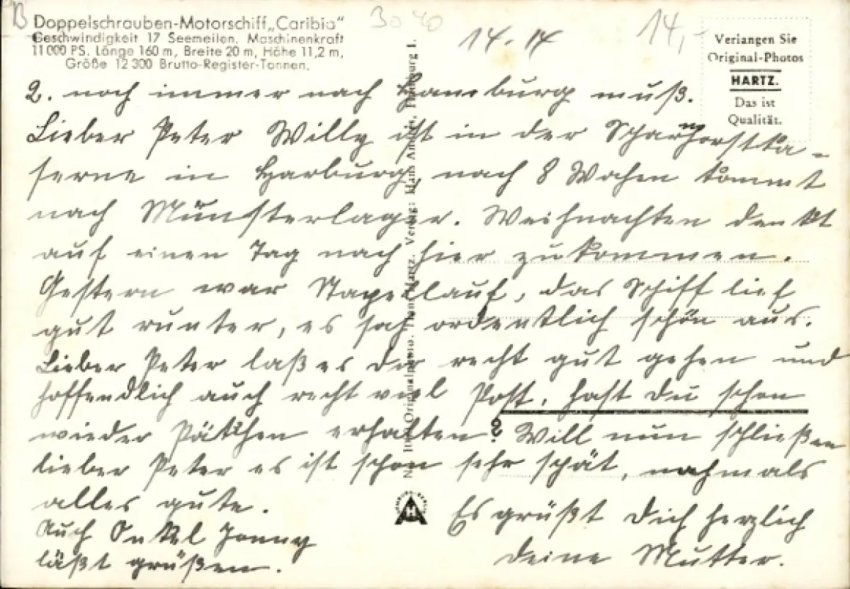 Zustand siehe Scan, 1947, gelaufen - ca 15 cm X 10 cm