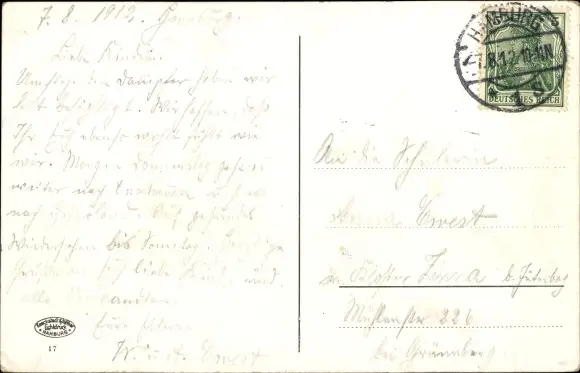 Zustand, siehe Scan, gelaufen, 1912 - ca 14 cm X 9 cm