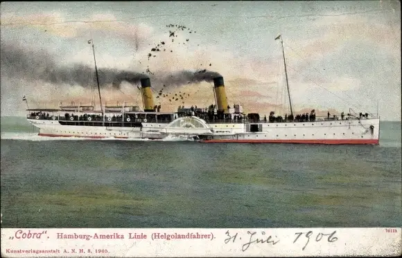 Ak Dampfschiff Cobra, HAPAG, Helgolandfahrer, Seebäderdienst