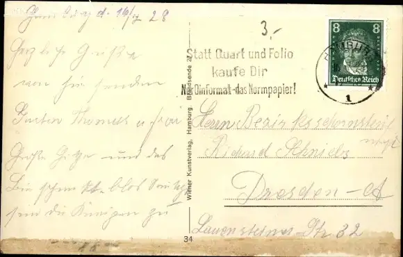 Zustand, siehe Scan, gelaufen, 1928 - ca 14 cm X 9 cm