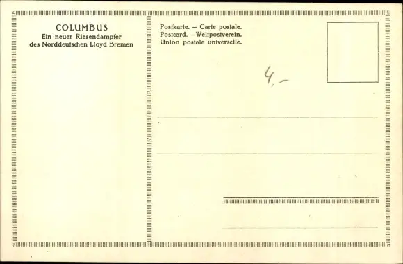 Ak Dampfschiff Columbus, Norddeutscher Lloyd Bremen