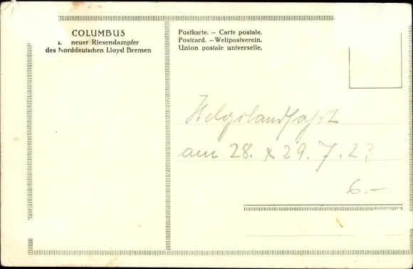 Ak Dampfschiff Columbus, Norddeutscher Lloyd Bremen