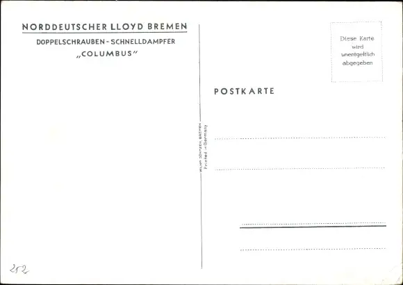 Ak Dampfschiff Columbus, Norddeutscher Lloyd Bremen, Ansicht Backbord