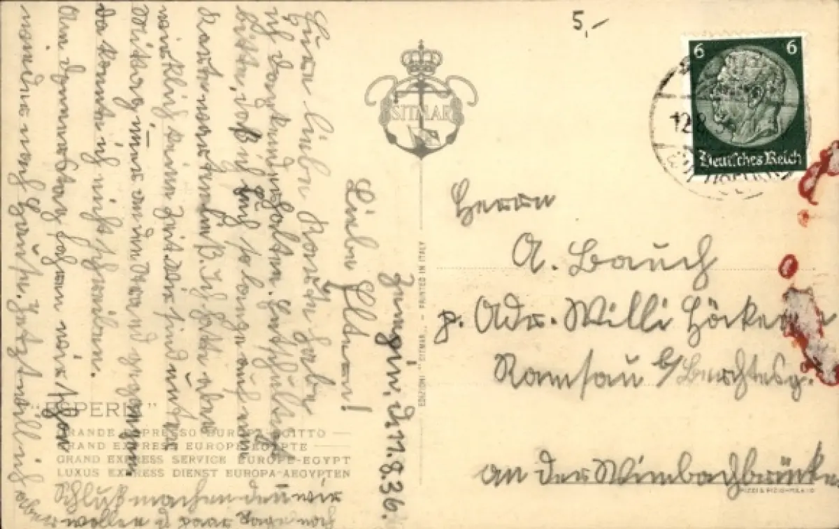 Zustand siehe Scan, gelaufen, 1936 - ca 14 cm X 9 cm