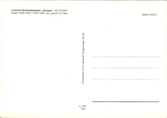Ak Dampfschiff Europa, Turbinenschnelldampfer, Norddeutscher Lloyd