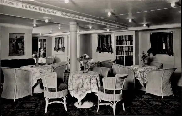 Ak Dampfschiff Hansa, HAPAG, Halle der Touristenklasse, Innenansicht