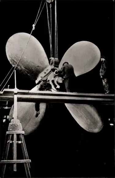 Ak Dampfschiff Hansa, HAPAG, eine der Antriebsschrauben, Werftarbeiter