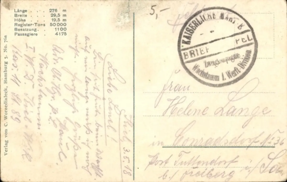 Ak Dampfschiff Imperator, HAPAG