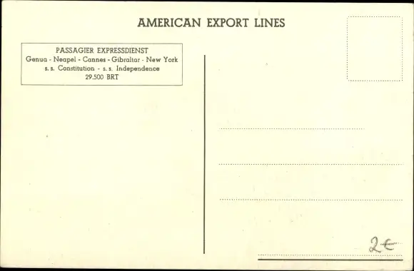Ak Dampfschiff Independence, American Export Lines